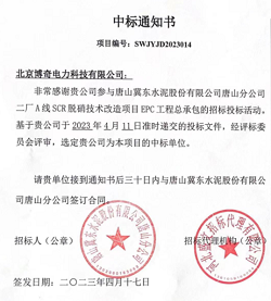 博奇環保中標唐山冀東水泥股份有限公司唐分二廠 A線水泥窯SCR脫硝超低排放項目